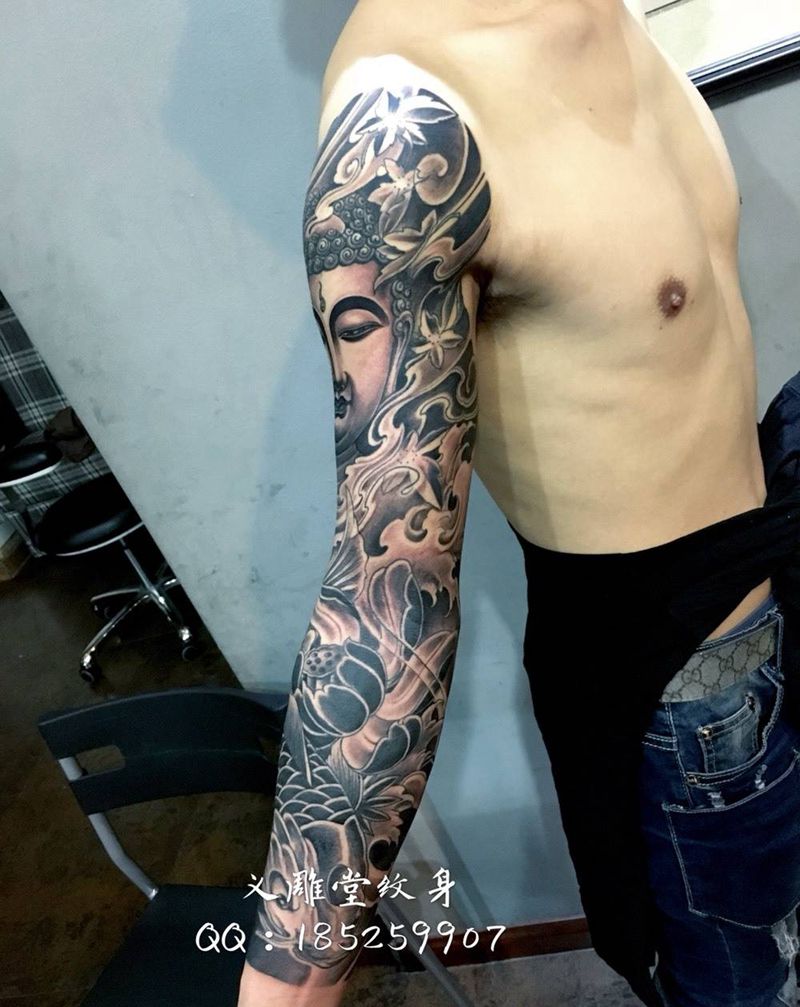 佛鱼花臂纹身纹身图片_传统手臂人物重庆纹身图案