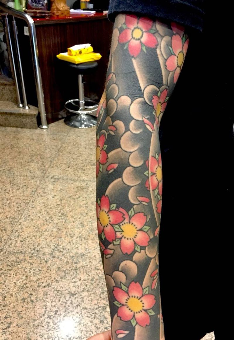 当前位置: 首页 >重庆市纹身店-义雕堂纹身纹身图案>樱花臂纹身图片