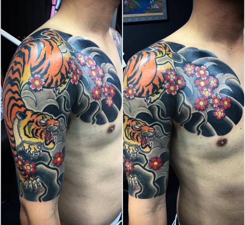当前位置: 首页 >重庆市纹身店-义雕堂纹身纹身图案>传统半胛纹身欣赏纹身图片_传统胸部手臂重庆图案纹身图案