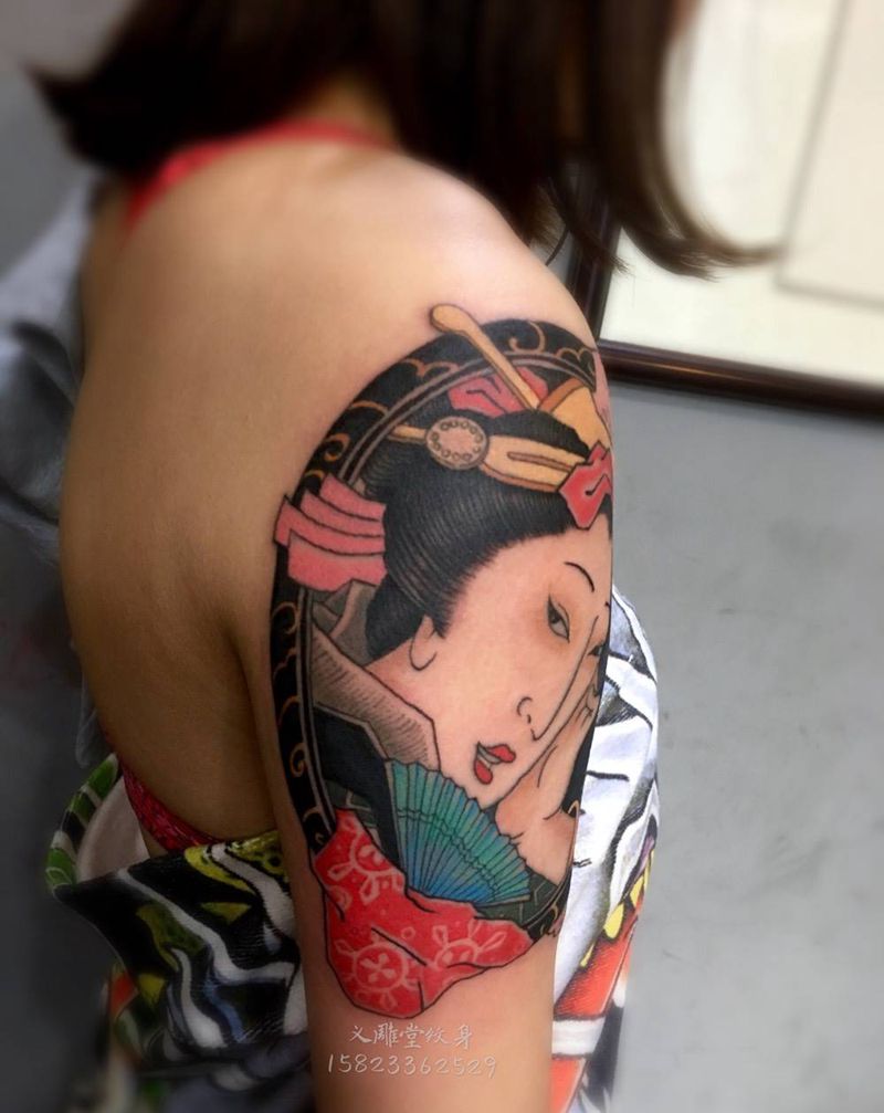 日式艺妓纹身纹身图片_传统手臂人物重庆重庆刺青图案纹身图案