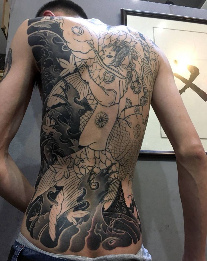 鬼若丸杀鲤鱼纹身图片_背部传统人物重庆重庆刺青义雕堂图案纹身图案
