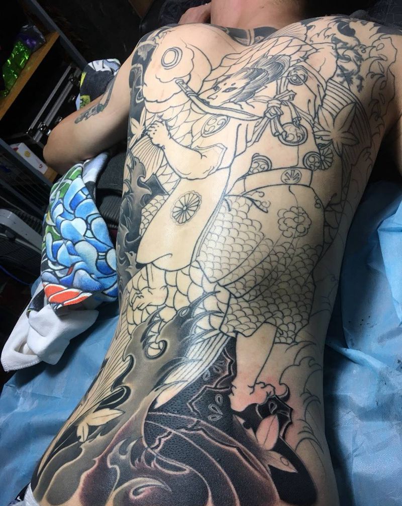 鬼若丸鲤鱼.退治纹身图片_背部传统人物鬼神重庆重庆刺青义雕堂图案老传统刺青纹身图案