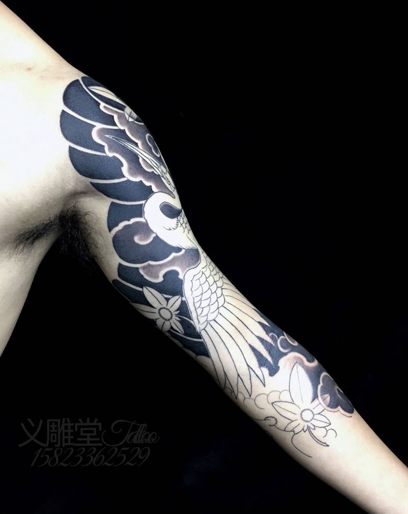 七分臂-鹤纹身纹身图片_手臂老传统重庆纹身图案