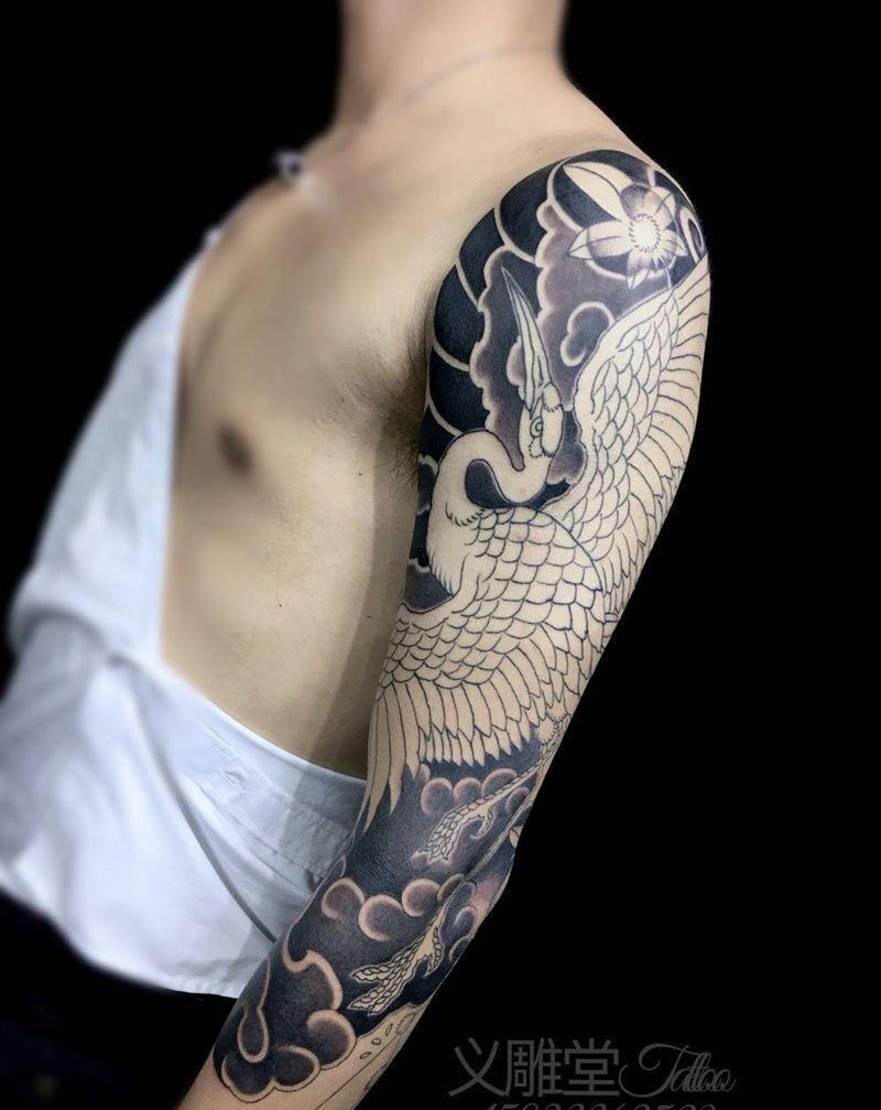七分臂-鹤纹身纹身图片_手臂老传统重庆纹身图案