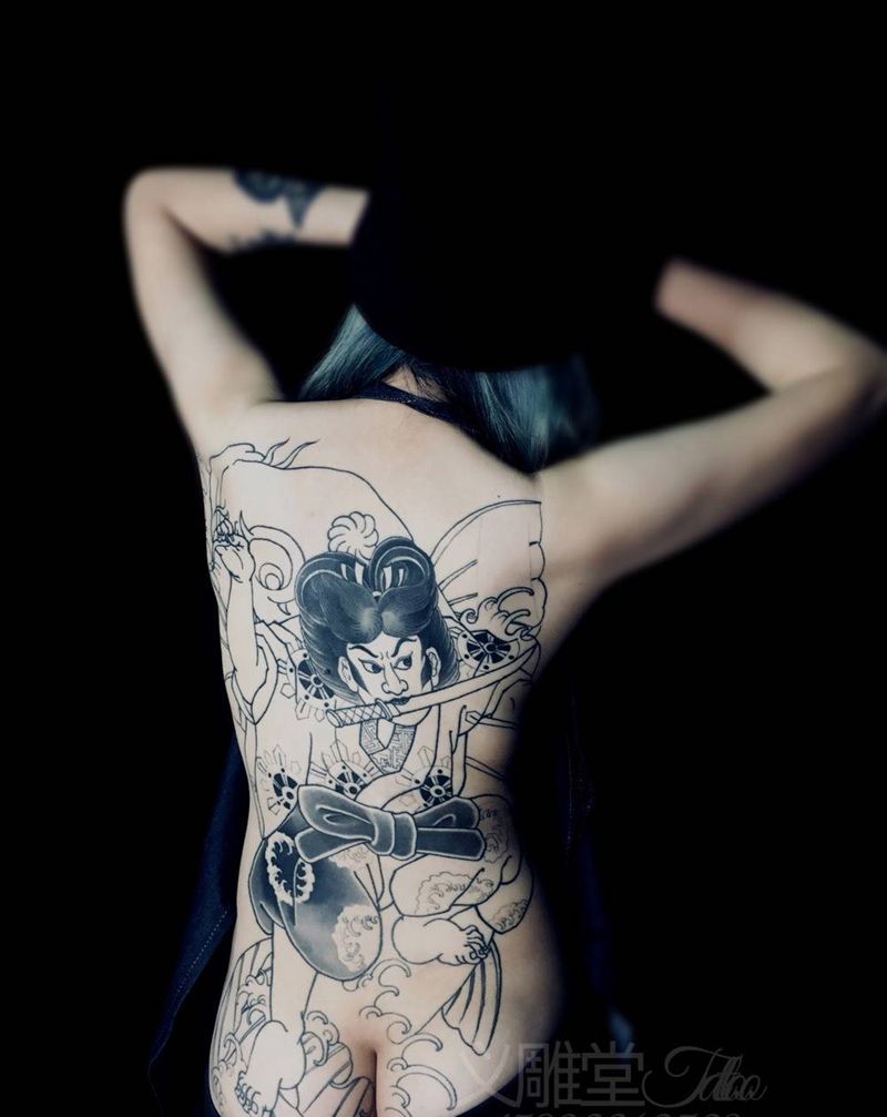 当前位置: 首页 >重庆市纹身店-义雕堂纹身纹身图案>鬼若丸纹身图片_背部老传统纹身图案
