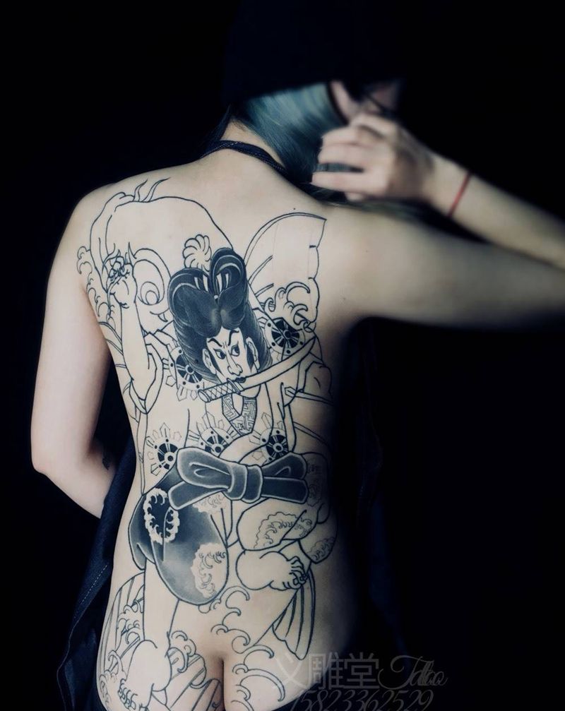 当前位置: 首页 >重庆市纹身店-义雕堂纹身纹身图案>鬼若丸纹身图片_背部老传统纹身图案