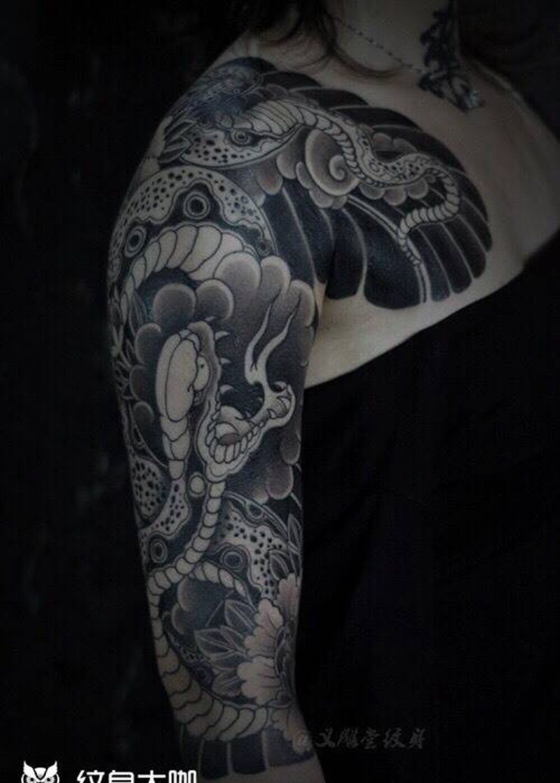 黑灰满背纹身图案