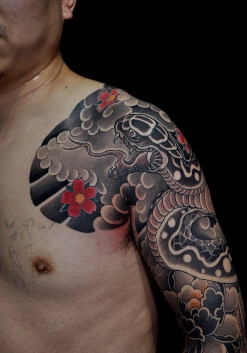 当前位置: 首页 >重庆市纹身店-义雕堂纹身纹身图案>蛇盘牡丹花臂纹身图片_手臂老传统重庆义雕堂纹身图案