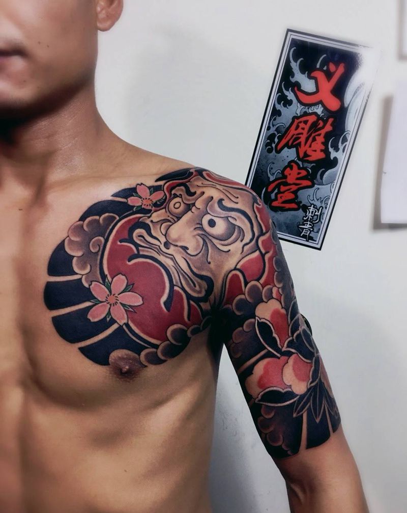 达摩蛋半胛遮盖纹身图片_老传统遮盖文身重庆纹身图案