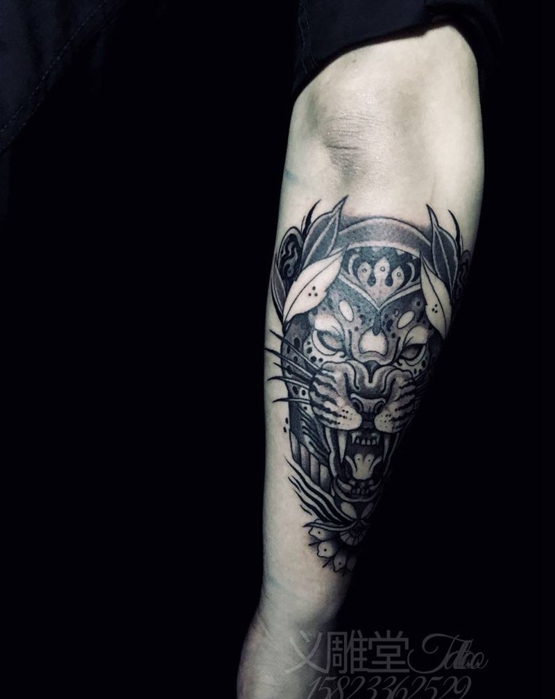 当前位置: 首页 >重庆市纹身店-义雕堂纹身纹身图案>花豹刺青纹身图片_手臂New School小手臂纹身图案