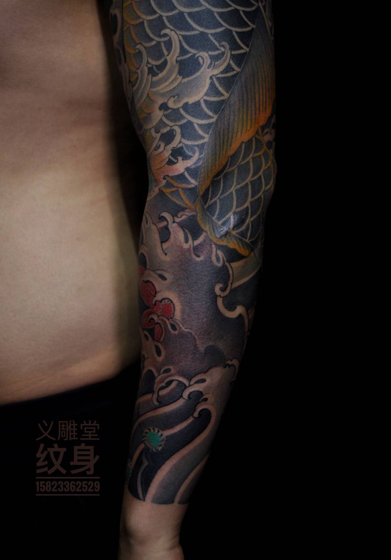 当前位置: 首页 >重庆市纹身店-义雕堂纹身纹身图案>鲤鱼花臂纹身纹身图片_手臂新传统重庆花臂纹身图案