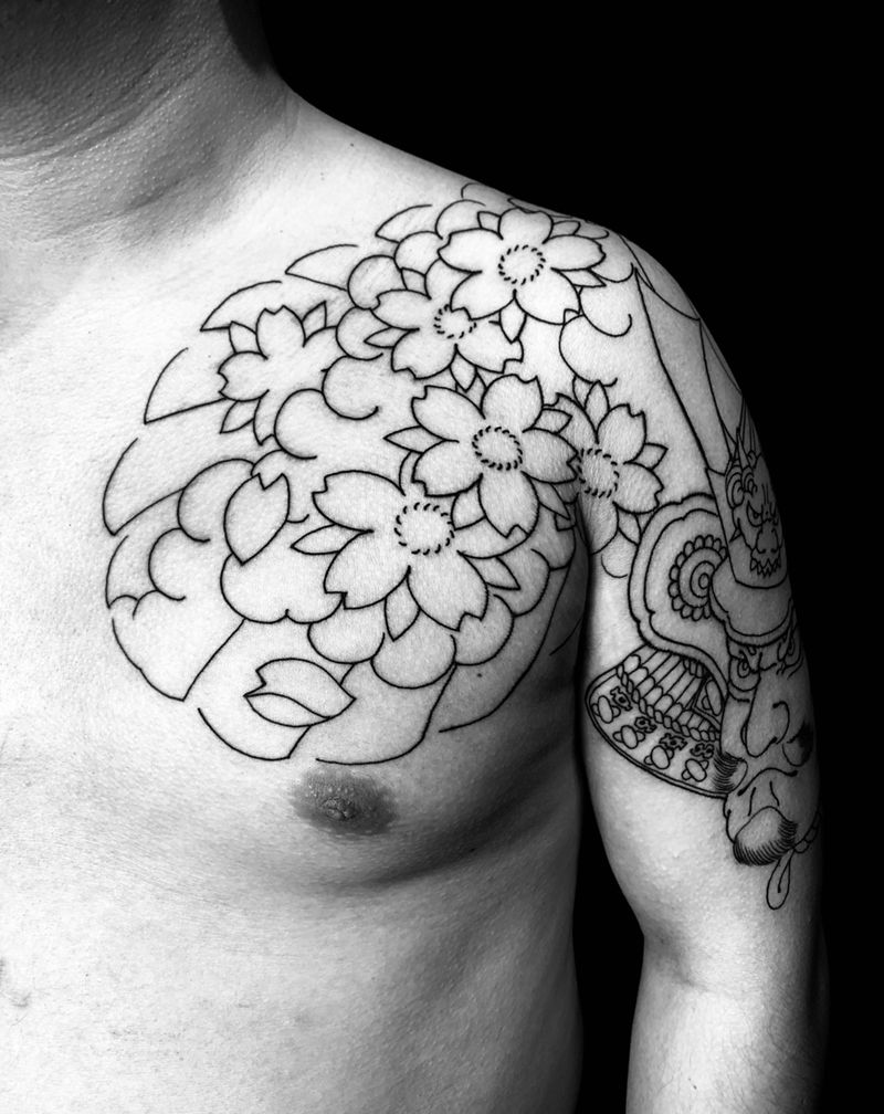 樱花武士半胛纹身纹身图片_老传统半胛纹身图案
