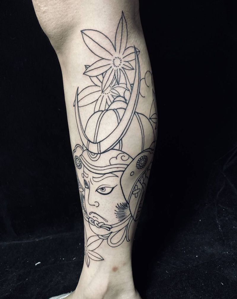 小腿日本武士纹身图片_老传统重庆纹身图案