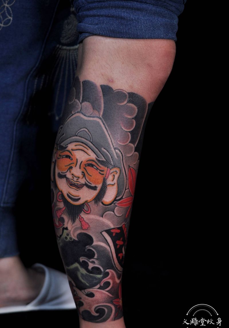 • T包小腿吹火男+阿多福纹身图片_腿部老传统新传统吹火男阿