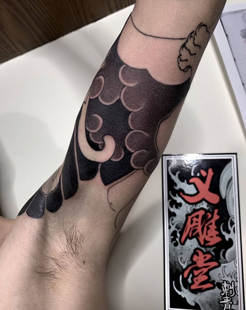 当前位置: 首页 >重庆市纹身店-义雕堂纹身纹身图案>云块与板雾纹身图片_手臂老传统义雕堂刺青纹身图案