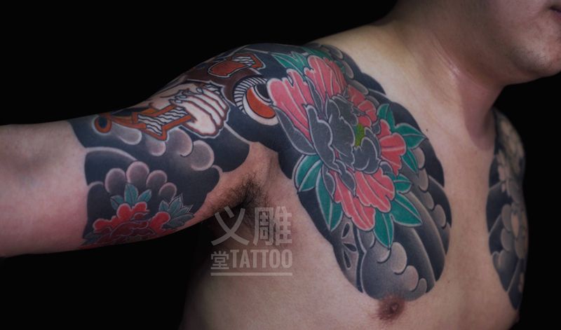 当前位置: 首页 >重庆市纹身店-义雕堂纹身纹身图案>大黑天牡丹纹身纹身图片_老传统日式传统纹身图案