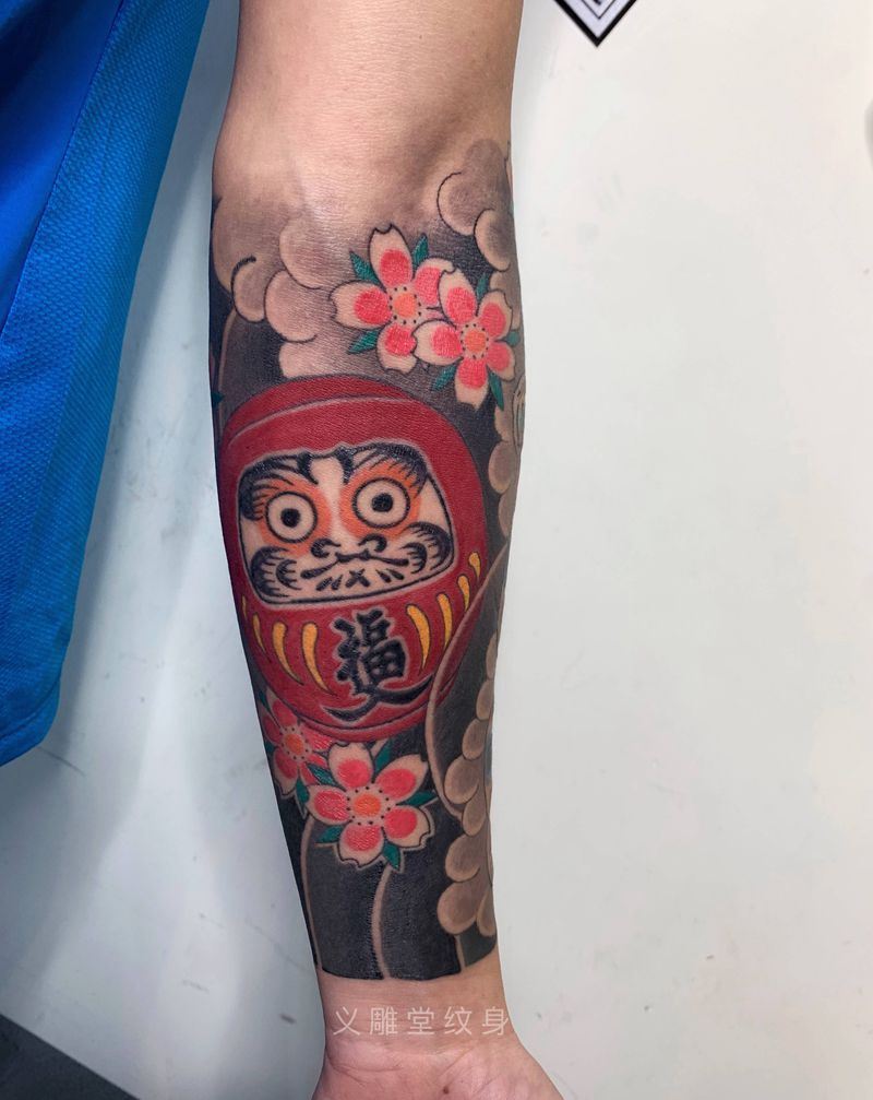 达摩蛋刺青纹身图片_手臂老传统重庆纹身图案