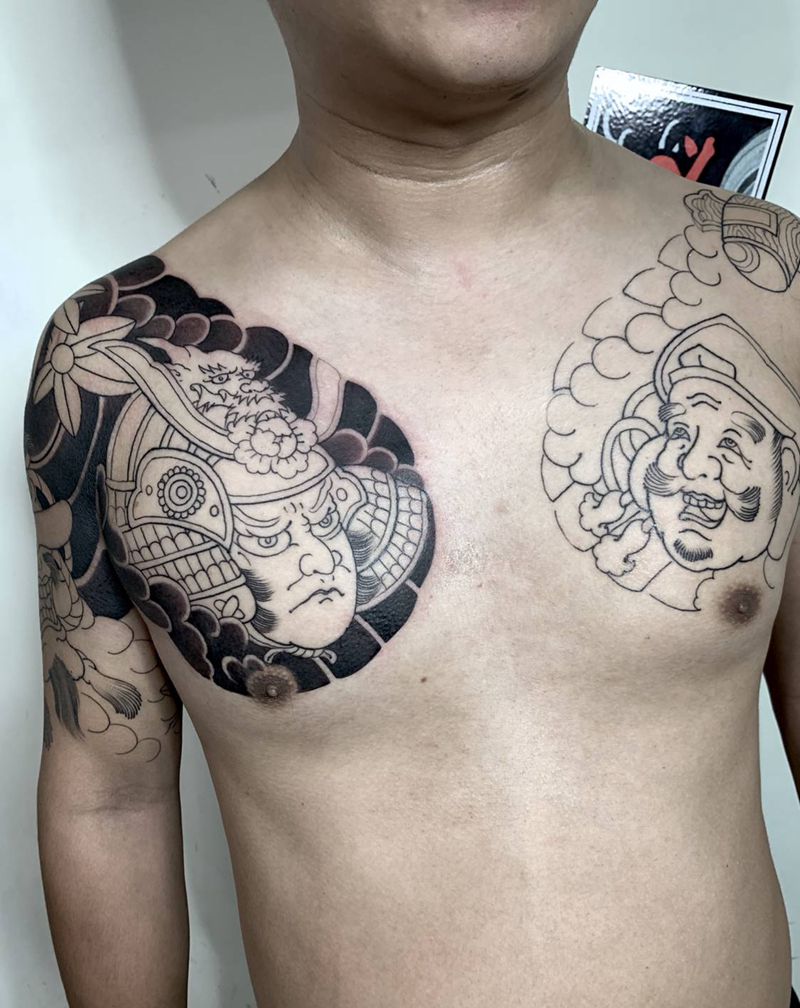 当前位置: 首页 >重庆市纹身店-义雕堂纹身纹身图案>双胛刺青纹身图片_胸部老传统义雕堂纹身图案