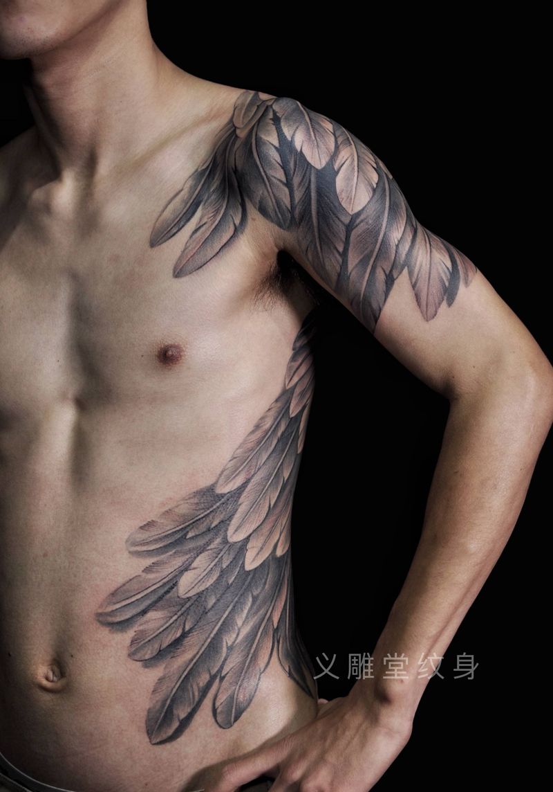 翅膀纹身(正面)纹身图片_胸部新传统重庆纹身图案