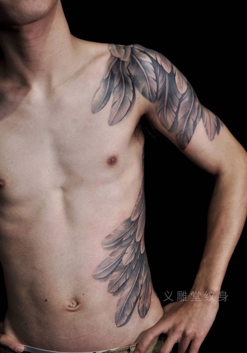 翅膀纹身(正面)纹身图片_胸部新传统重庆纹身图案