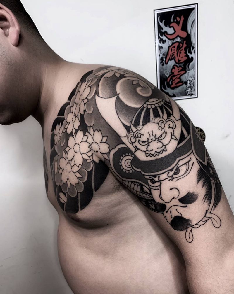 当前位置: 首页 >重庆市纹身店-义雕堂纹身纹身图案>樱花武士半胛纹身图片_胸部老传统重庆纹身图案