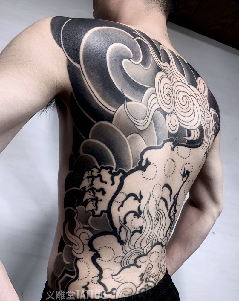 • 黑灰满背纹身图案