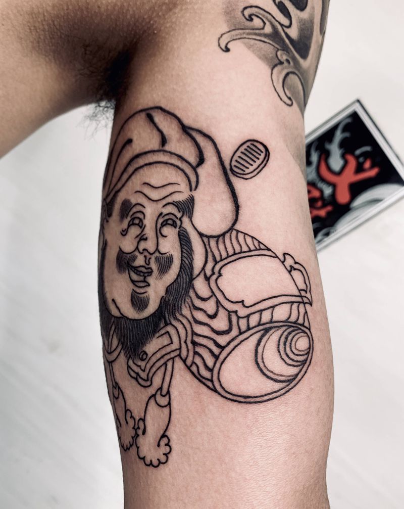 当前位置: 首页 >重庆市纹身店-义雕堂纹身纹身图案>大黑天线条纹身图片_手臂重庆纹身图案