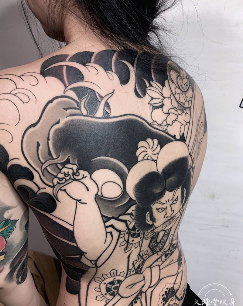 鬼若丸局部纹身图片_背部老传统重庆纹身图案