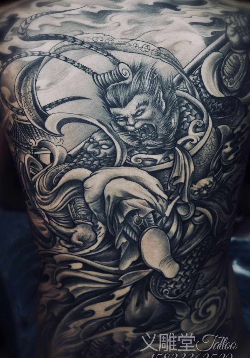齐天大圣纹身纹身图片_背部新传统重庆纹身图案