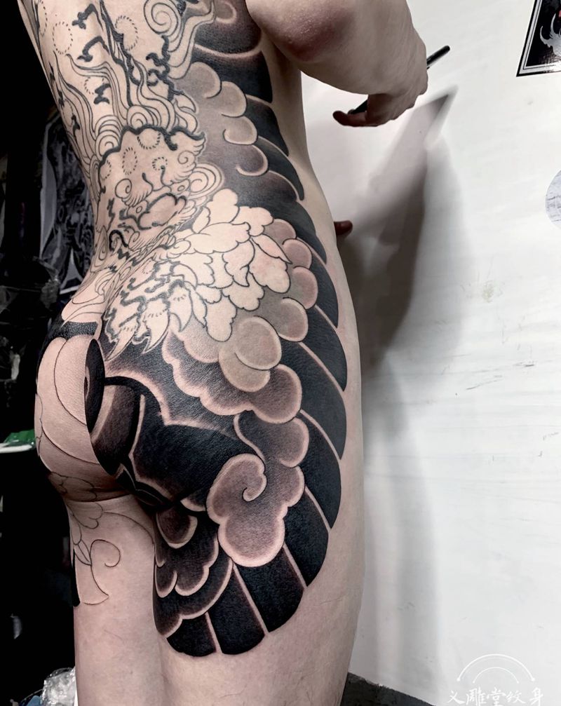 • 黑灰满背纹身图案