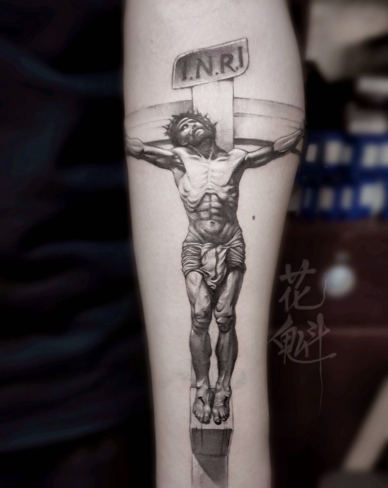 耶稣基督纹身图片_手臂欧美写实纹身图案