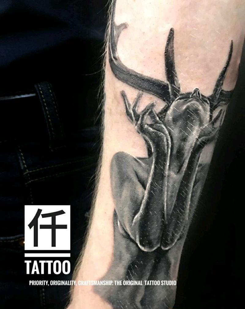 当前位置: 首页 >重庆市纹身店-仟刺青纹身图案>外国小哥的鹿女纹身图片_手臂欧美肖像清新写实人物原创女人鹿角成品纹身图案