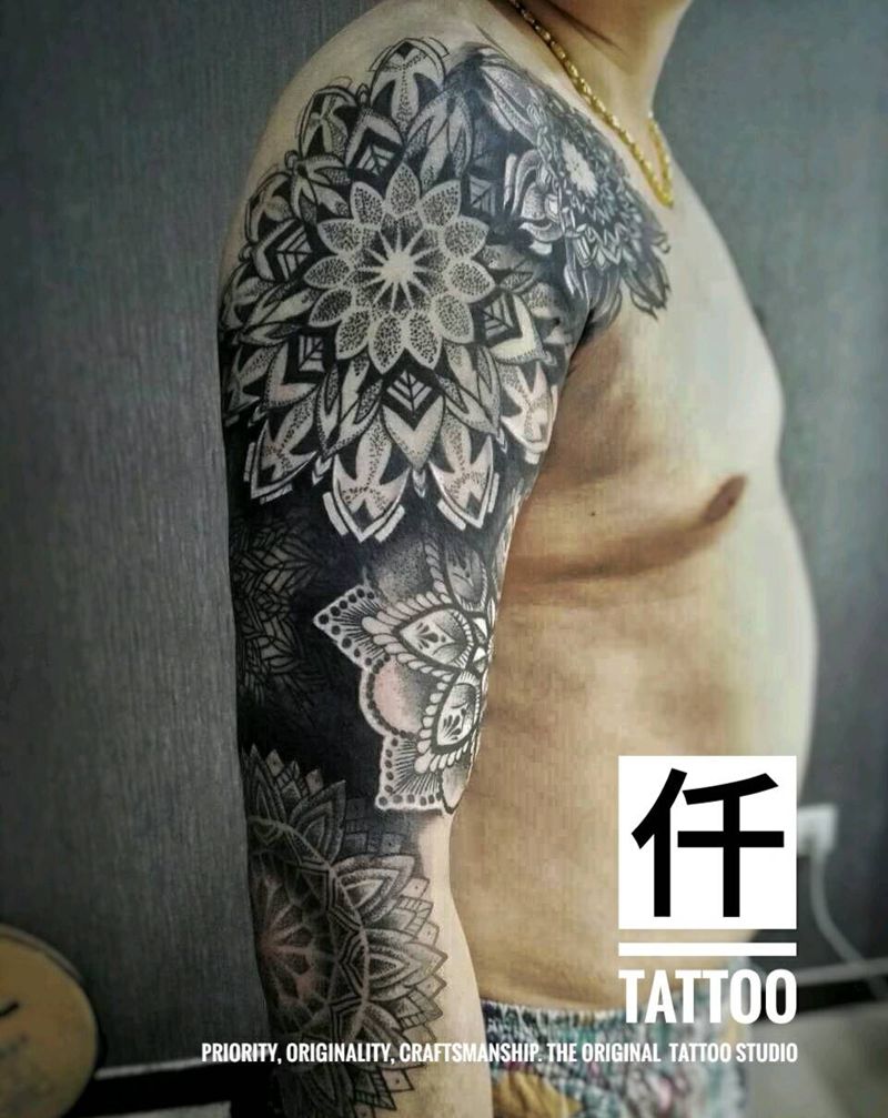 当前位置: 首页 >重庆市纹身店-仟刺青纹身图案>原创梵花点刺纹身图片_手臂几何宗教原创点刺梵花成品纹身图案