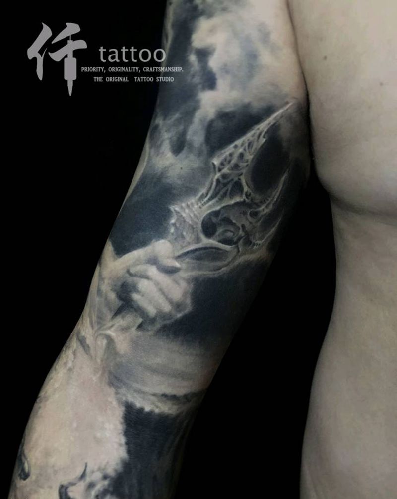 当前位置: 首页 >重庆市纹身店-仟刺青纹身图案>波塞冬花臂纹身图片_手臂手部欧美写实New School波塞冬骑士海纹身图案