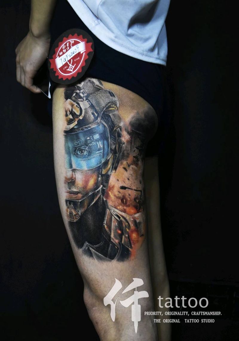 当前位置: 首页 >重庆市纹身店-仟刺青纹身图案>机械战警纹身图片_臀部腿部欧美写实机械战争彩色纹身图案