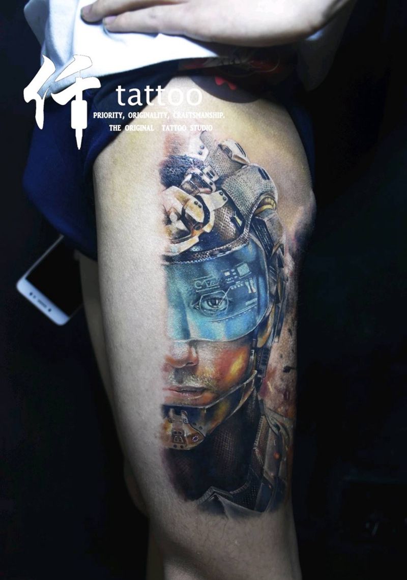 当前位置: 首页 >重庆市纹身店-仟刺青纹身图案>机械战警纹身图片_臀部腿部欧美写实机械战争彩色纹身图案
