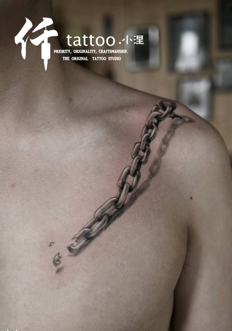 铁链纹身图片_肩部胸部欧美写实铁链3d链子纹身图案