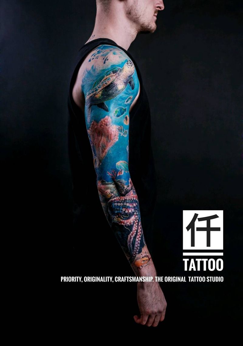 当前位置: 首页 >重庆市纹身店-仟刺青纹身图案>原创彩色写实海底世界花臂纹身图片_手臂欧美写实动物原创鱼海底彩色超写实成品纹身图案