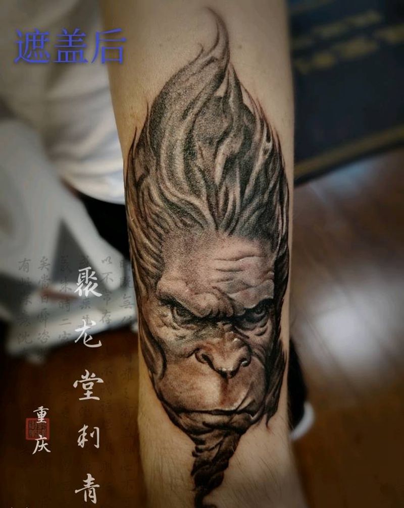 当前位置: 首页 >重庆市纹身店-重庆聚龙堂刺青纹身图案>猴王纹身纹身图片_手臂欧美写实纹身图案