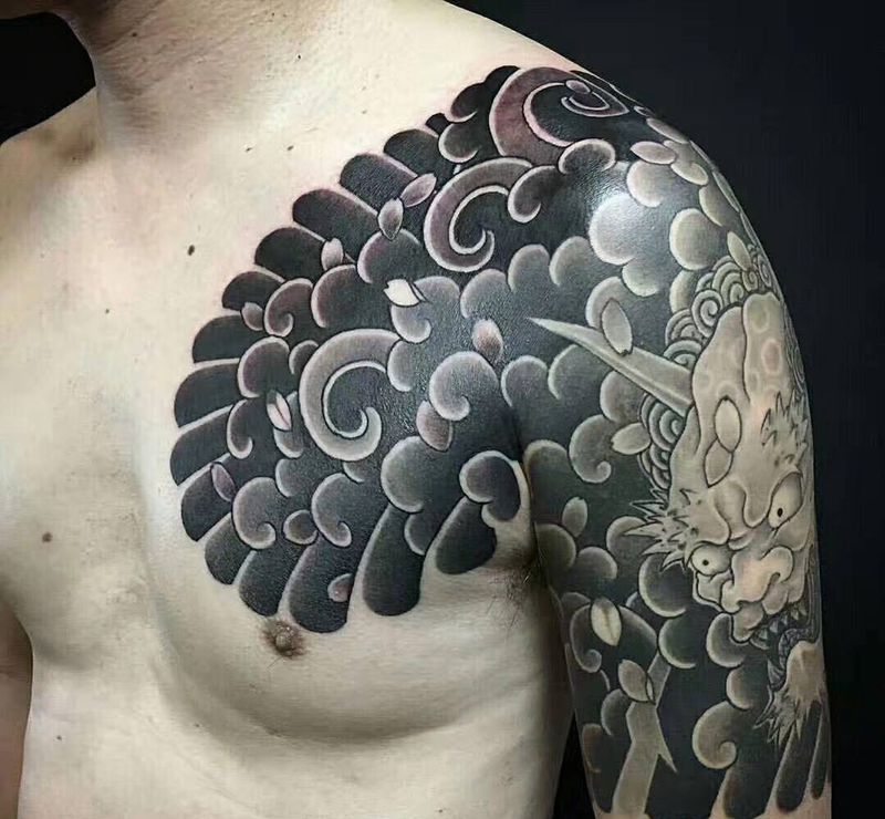 • 纹身吧推荐的披肩图腾半胛纹身图案作品展示
