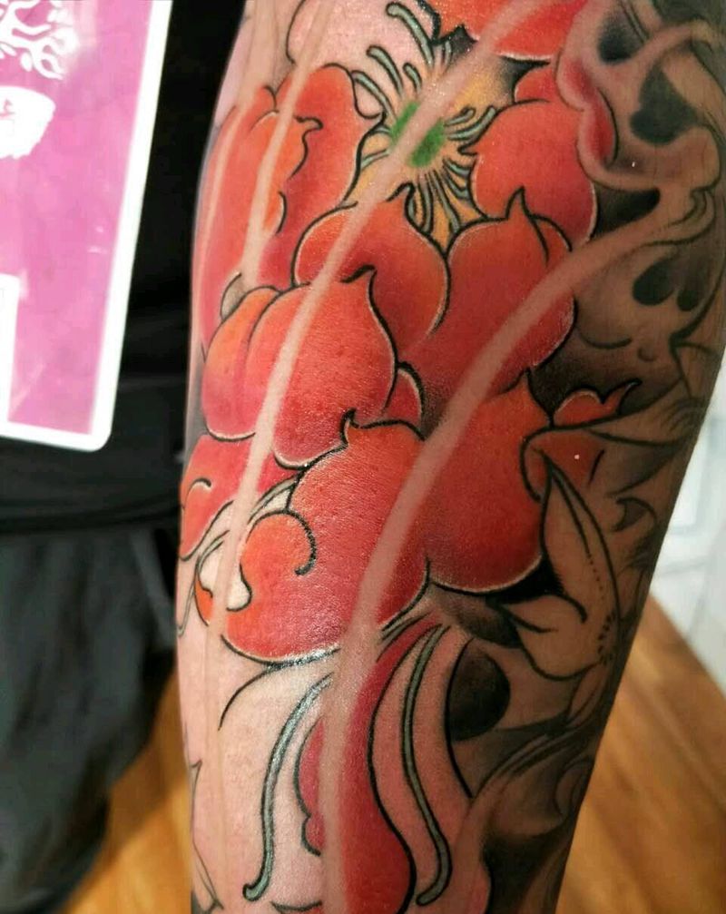 • T网红王老大花腿龙纹身图片_腿部新传统纹身图案