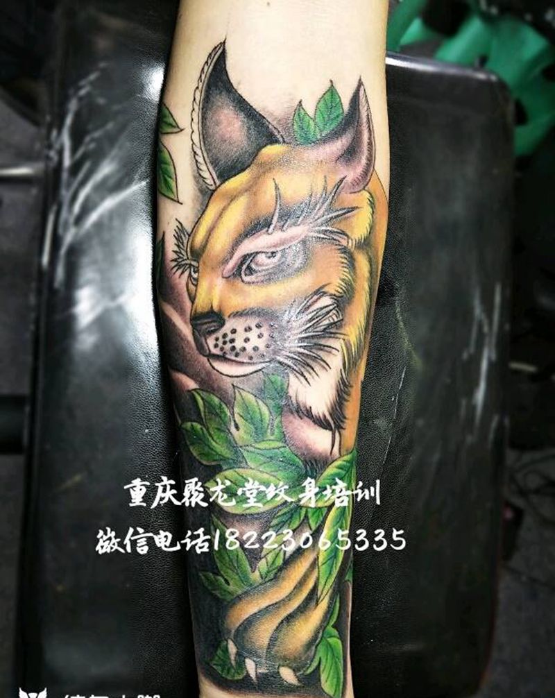当前位置: 首页 >重庆市纹身店-重庆聚龙堂刺青纹身图案>狸猫纹身图片_手臂欧美传统肖像写实动物原创成品纹身图案