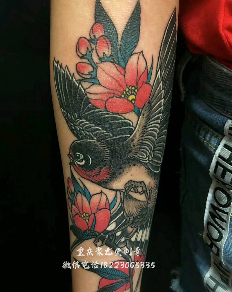 当前位置: 首页 >重庆市纹身店-重庆聚龙堂刺青纹身图案>燕子金鱼包小臂纹身图片_手臂传统动物原创成品纹身图案