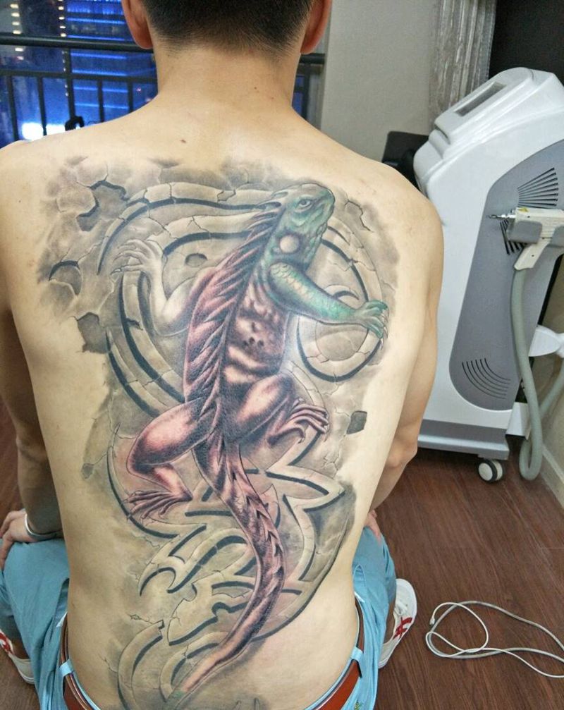 蜥蜴 未完成待续纹身图片_背部写实动物原创成品纹身图案