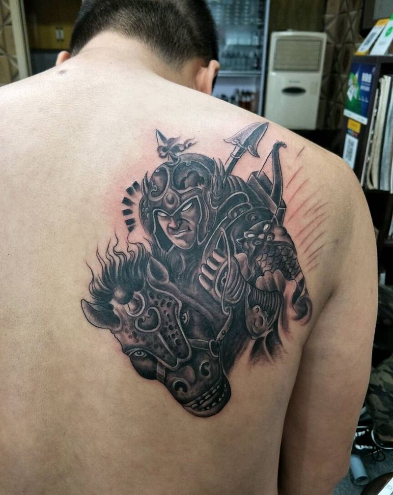 当前位置: 首页 >重庆市纹身店-重庆聚龙堂刺青纹身图案>战马赵子龙纹身图片_肩部背部传统肖像写实国画人物鬼神原创成品纹身图案