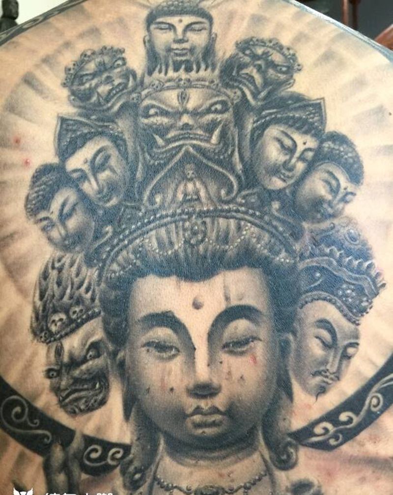 写实石裂佛满背纹身图片_背部写实人物原创成品纹身图案
