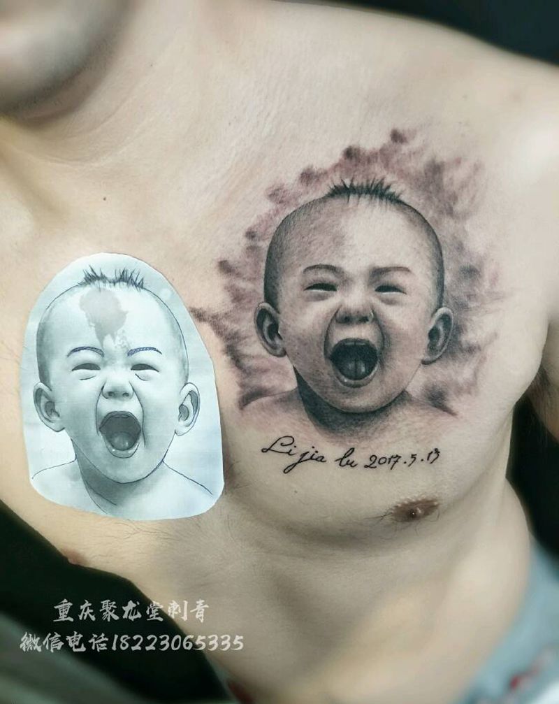当前位置: 首页 >重庆市纹身店-重庆聚龙堂刺青纹身图案>超写实肖像分享纹身图片_肩部胸部欧美写实纹身图案