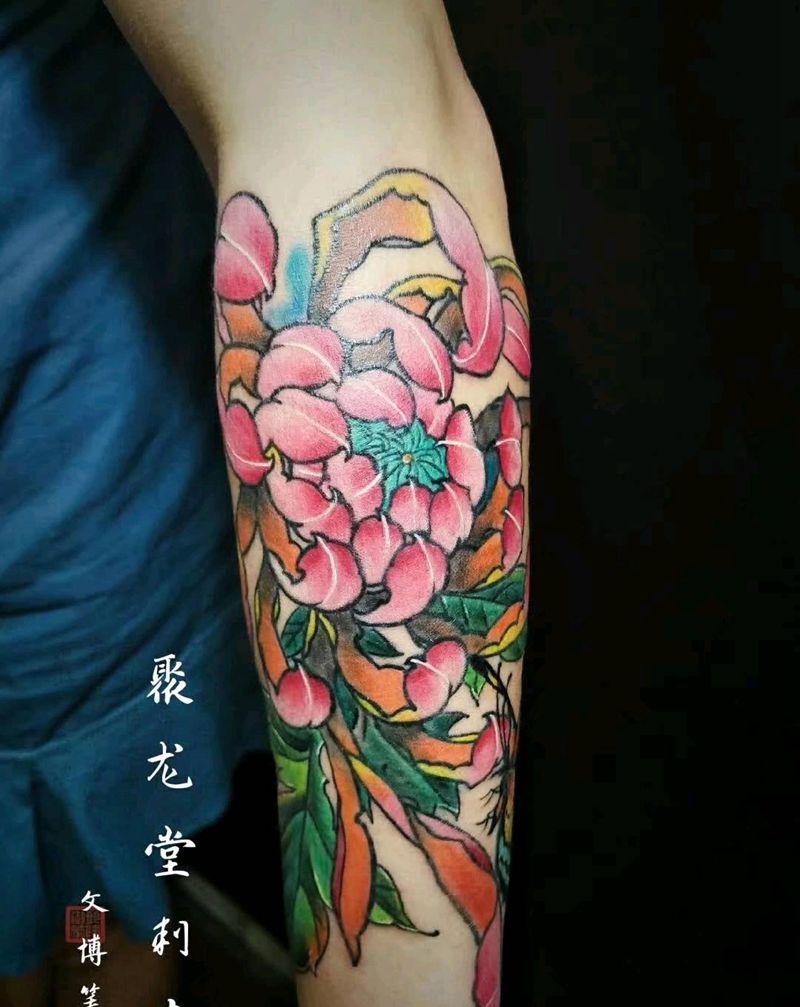 当前位置: 首页 >重庆市纹身店-重庆聚龙堂刺青纹身图案>菊花纹身纹身图片_手臂新传统水彩纹身图案