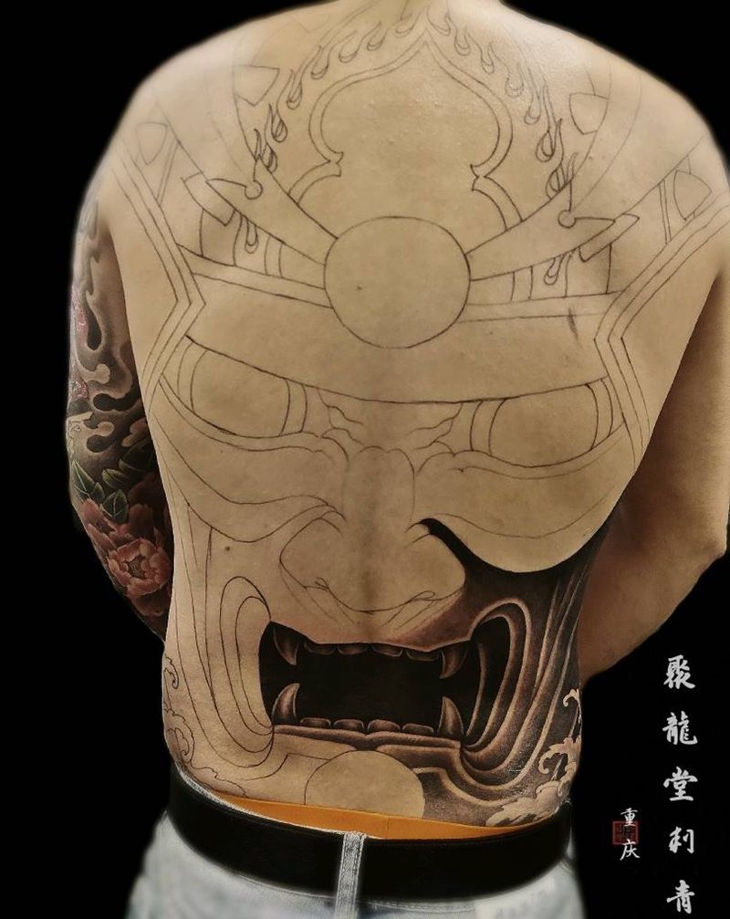 当前位置: 首页 >重庆市纹身店-重庆聚龙堂刺青纹身图案>鬼武士纹身图片_背部老传统纹身图案