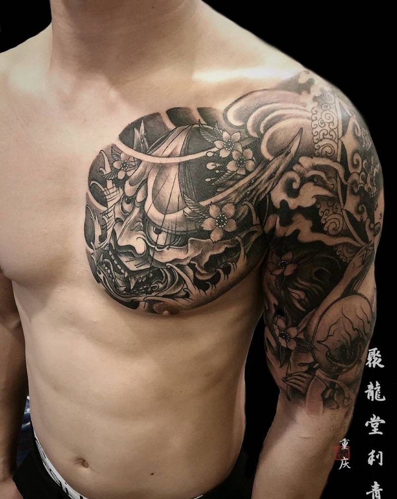 当前位置: 首页 >重庆市纹身店-重庆聚龙堂刺青纹身图案>艺妓般若半胛纹身图片_胸部手臂新传统老传统纹身图案